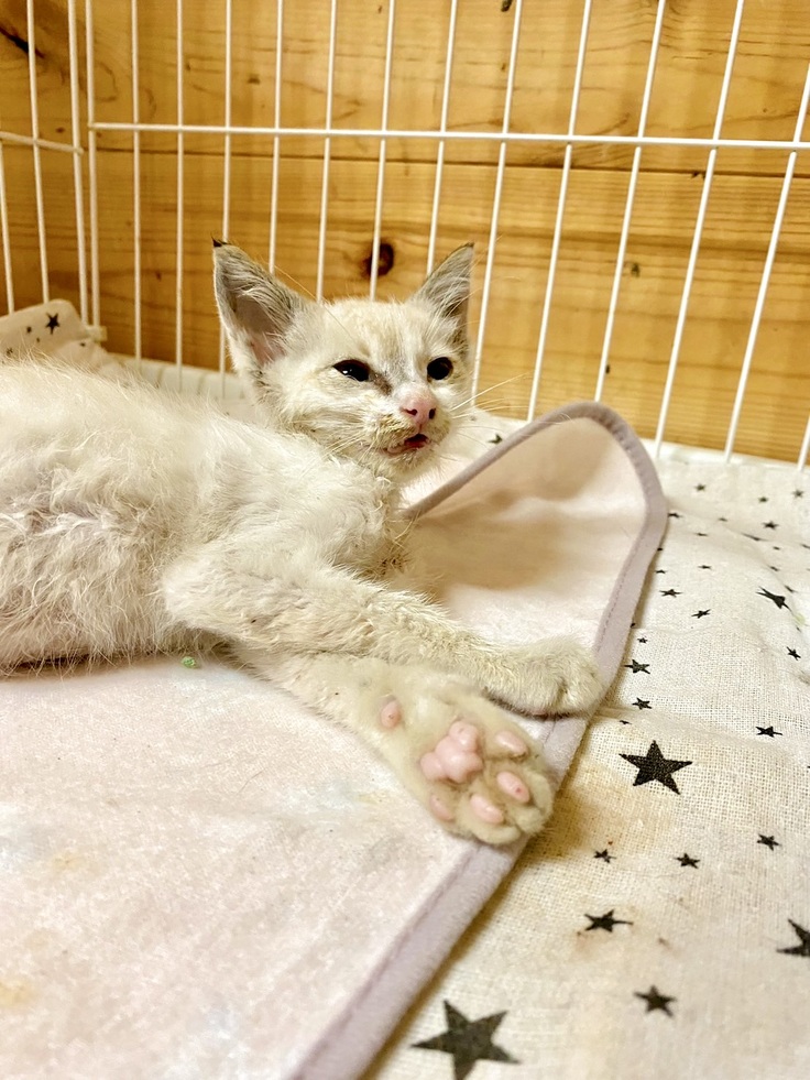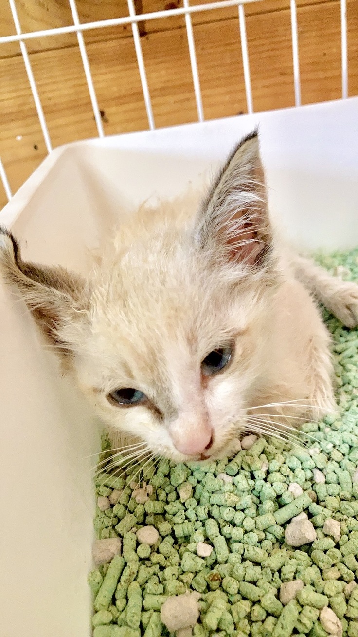 昼過ぎにやって来た子は段ボールの中でぐったりうずくまっておりました。