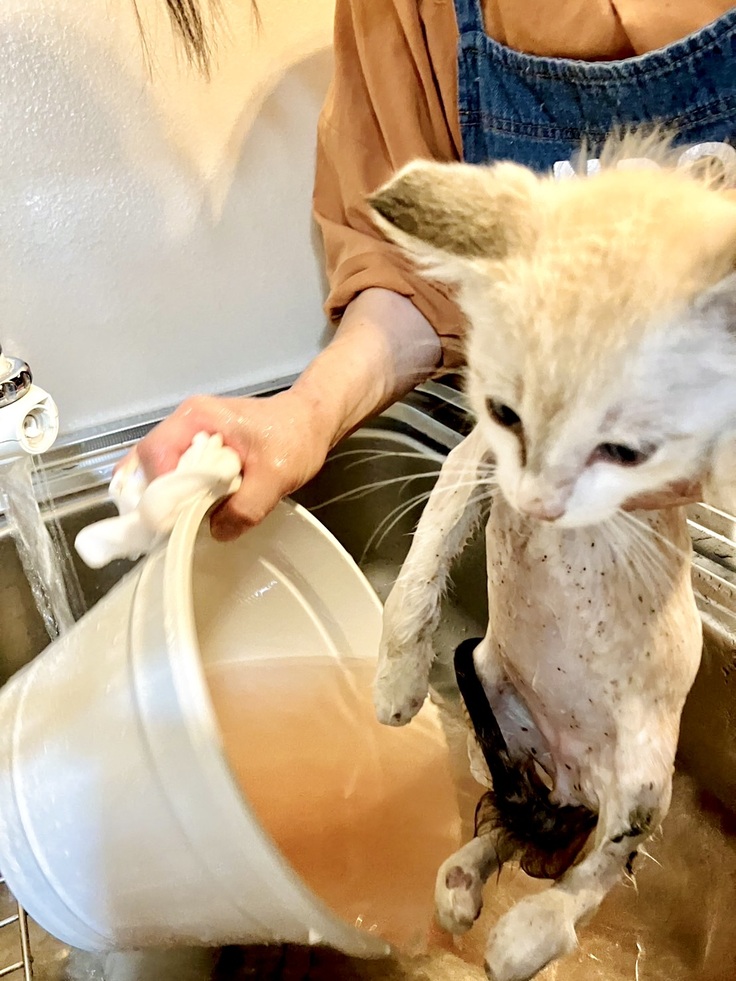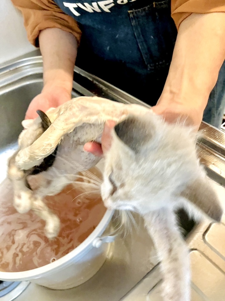 大量のノミが体中で動いており様子を見ながらぬるま湯でシャンプーをすると