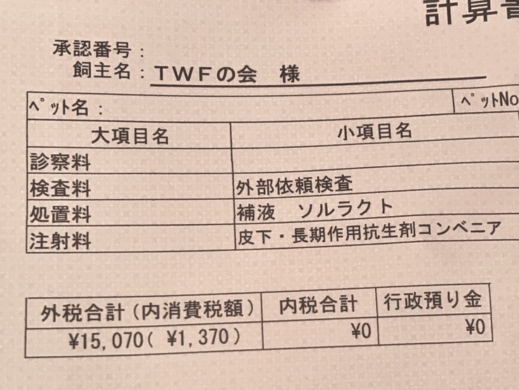 日曜日でも開いている病院を探して連れて行くと、やはり腹水が溜まっておりFIPかもしれない。