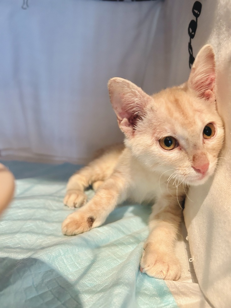 『友人から保護した仔猫を預かったが、自分が退院したばかりでお世話か出来ない…。』との依頼があり当会にて保護させて頂きました。
