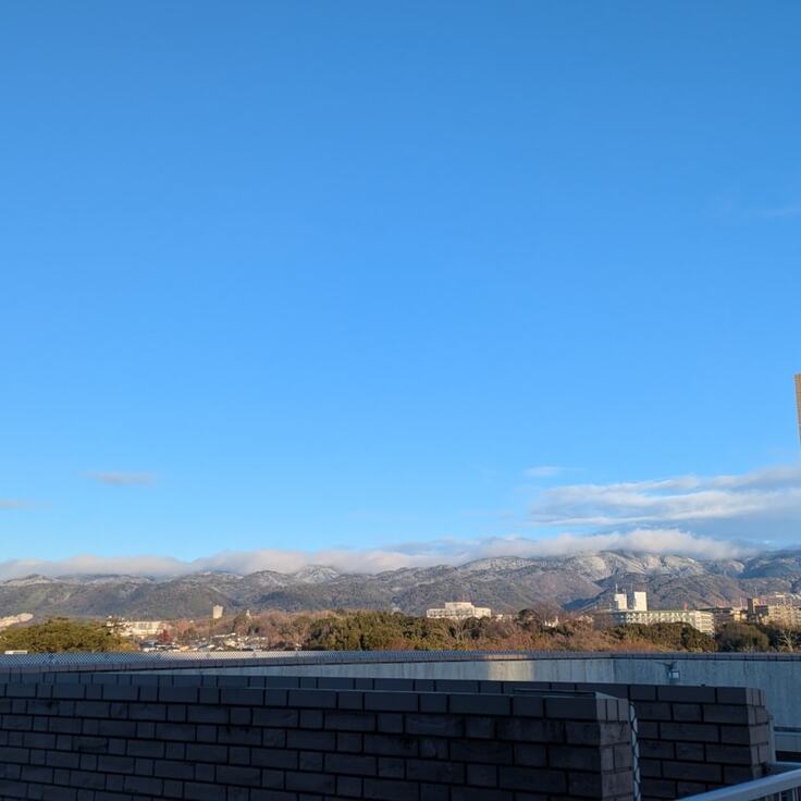 今朝は研究棟から箕面の山の雪化粧が見えました。