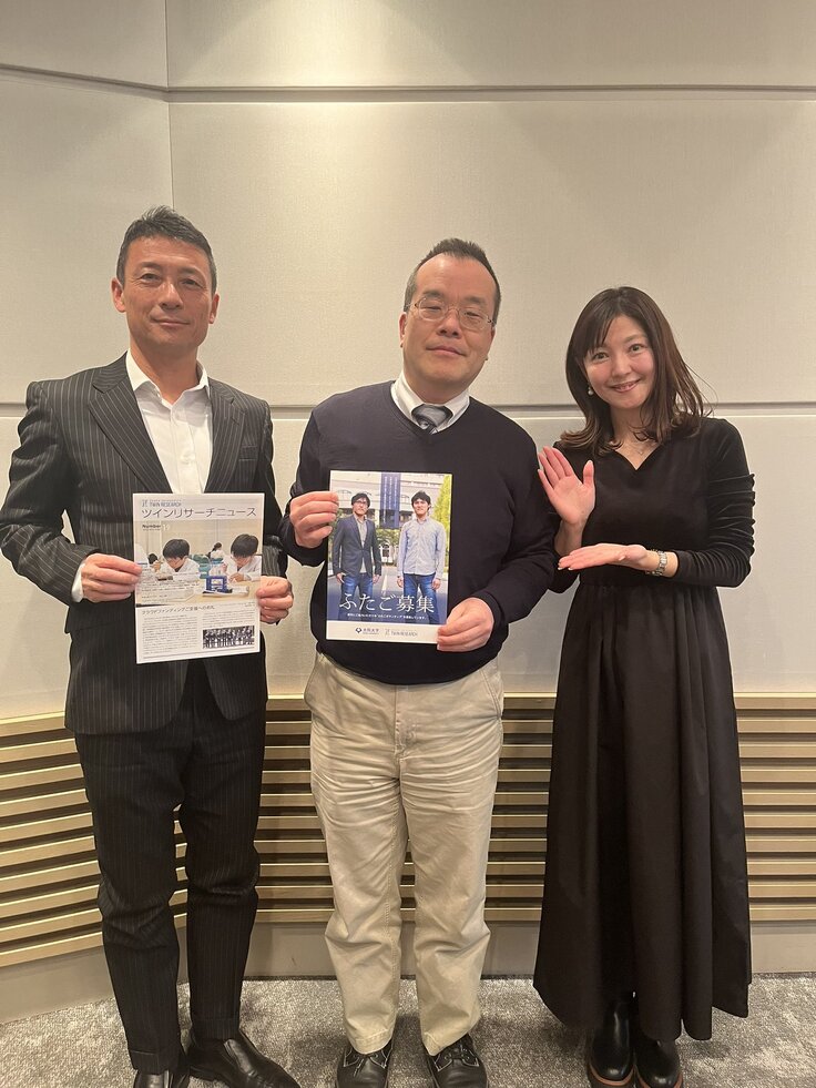 パーソナリティの小縣裕介さん、江崎友基子さんとのお話が弾みました。江崎さんは高校生のお子さんがふたごでいらっしゃるそうです。