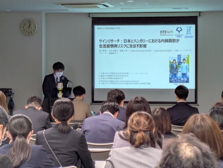 センター講師の荒川が、11月7日(金)に名古屋市で開催された第65回日本臨床化学会年次学術集会で、日本とハンガリーの一卵性双生児で内臓脂肪と臨床検査値などとの関係が遺伝・環境のいずれに影響しているか比較した成果を発表しました。昨年、Erasmus+助成金でハンガリーへ研究交流に赴いた成果です。