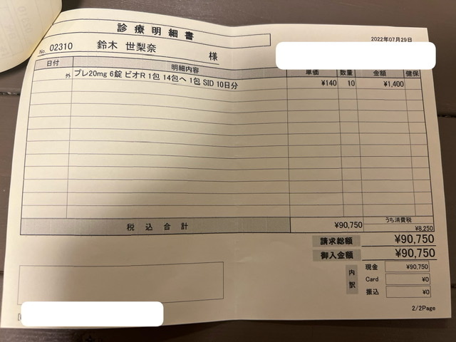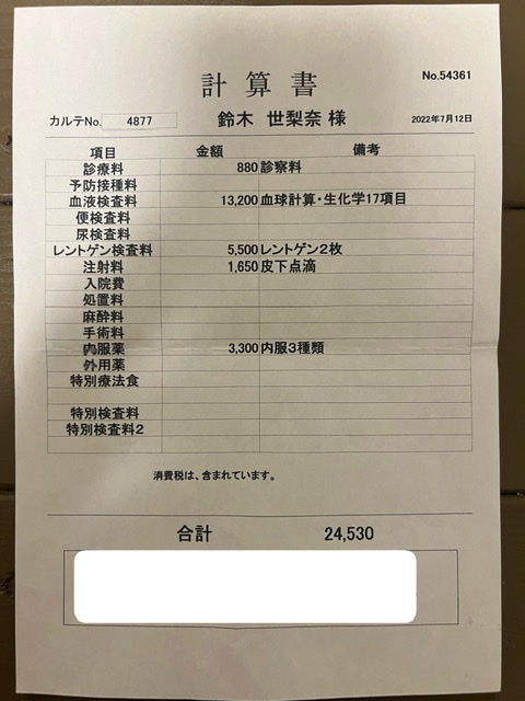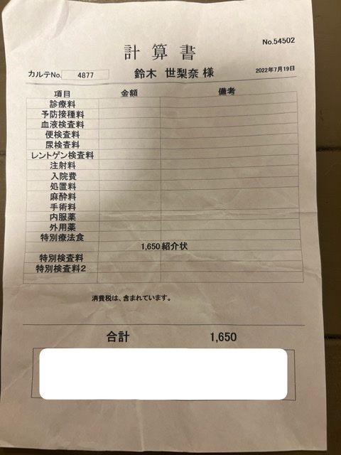 本来ならばこちらの治療費は家族である私達が支払うべきなのですが