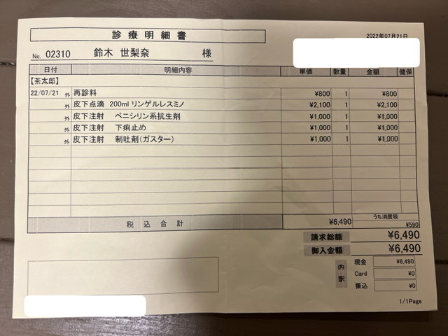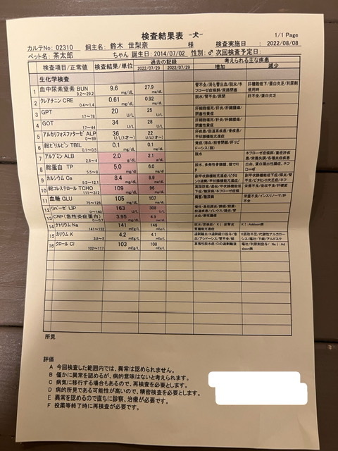 8歳を迎えた2022年の7月上旬から、茶太郎の食欲低下・下痢がみられ