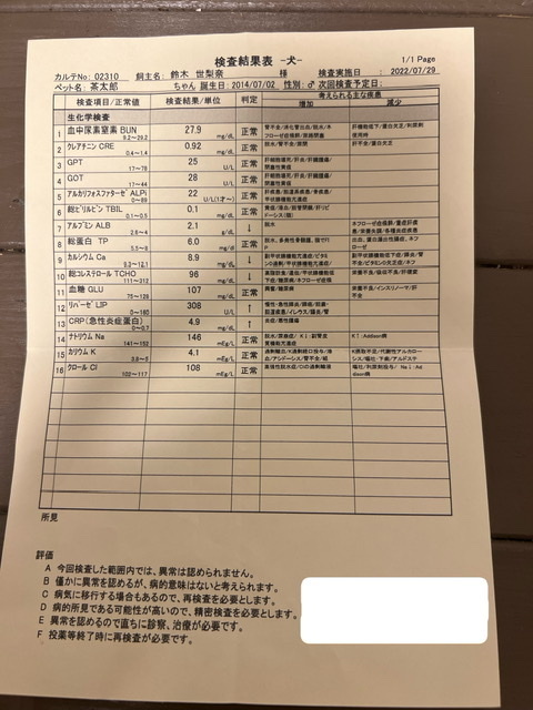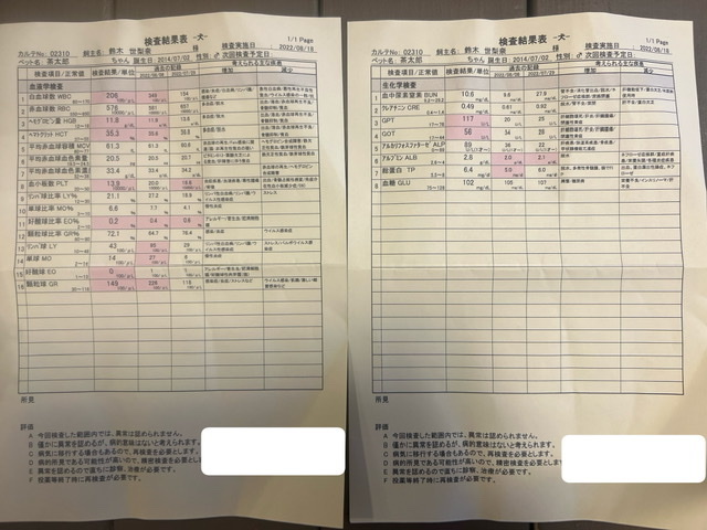 血液検査の結果でも赤く異常な数値がでてしまっていました...