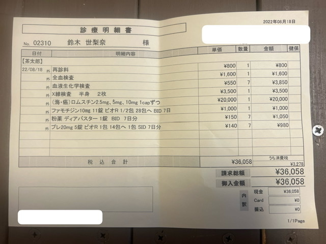 ひとまず計16回の抗がん剤投与で約640,000円(平均の4万円で計算させて頂いてます)