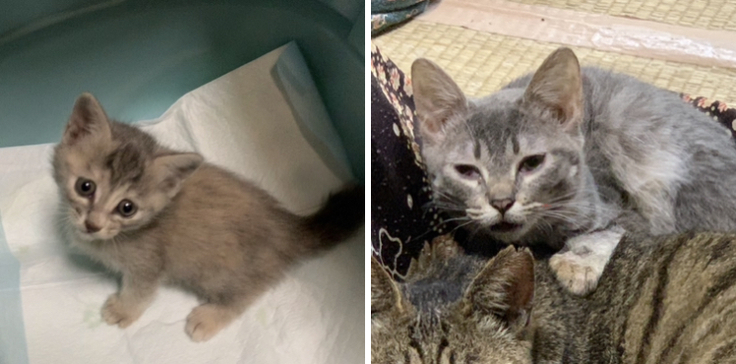〖生後5~6週間の仔猫♀〗 〖衰弱した体の小さな成猫♀〗