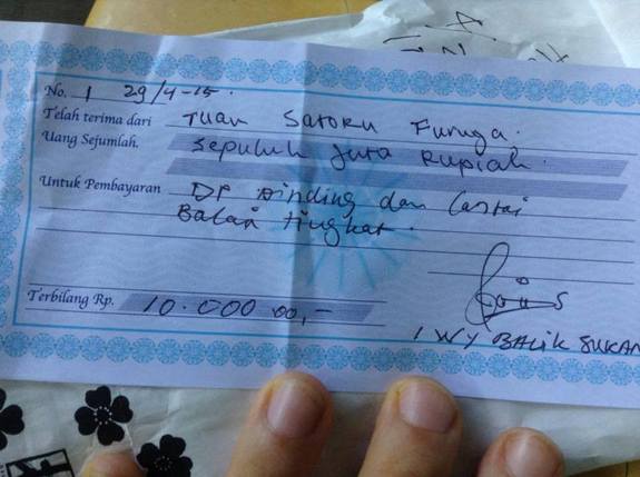 現在ある建物に張る壁部分など、作業場で作ってもらっています。「手付金」としてRp.10,000,000(93,000円程)を彼らにお支払いしました!