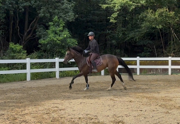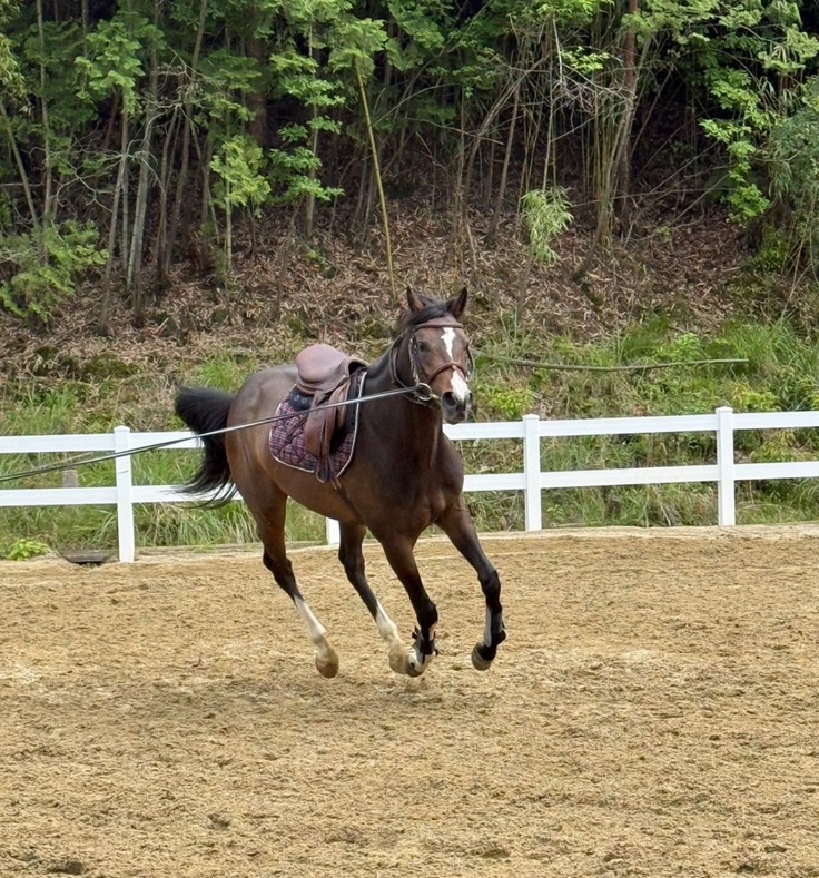 調馬策での回転運動ではバランスを崩す場面もありますが、徐々に動きが安定し良い変化が見られるようになってきました。