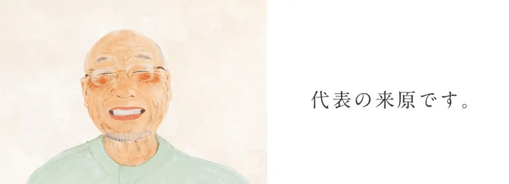 初めまして、株式会社吉寅商店の代表 来原です。うまがおらーめん(味噌)のパッケージイラスト、実は私でございます。パッケージのイラストは実在する方をモデルに出演いただいており、 その中の1人として私も参加をさせていただきました。 (※少し恥ずかしい気持ちもありますが、、)
