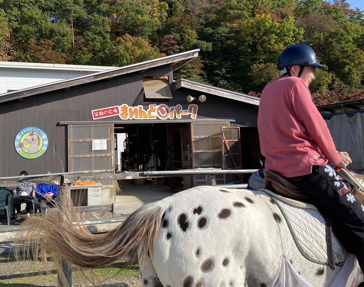 何と!自分たちの施設内に乗馬施設が欲しい!!という熱い思いが届き、平成17年、ついにその夢が叶うことになりました。その時から私の生活は一変‼まったく馬の知識のない私は乗馬活動を始めるために本格的に障がい者乗馬を行っている当時の宮城県船形コロニー内ルミエール牧場にて数か月間にわたり研修をさせて頂きました。馬の扱い方、厩舎掃除の仕方、馬の手入れ、調教の仕方、馬の乗り方、障害のある方への乗馬アプローチの仕方、馬についてのノウハウを徹底的に叩き込まれ、毎日馬漬けの日々を過ごしました。 研修最後の日には場長さんより「よく頑張りました!山形で障がい者乗馬の活動を普及してください!」という温かく嬉しい言葉を頂き、乗用馬2頭を譲り受ける事になりました。 後日、サラブレッドのマインドと道産子のカムイが山形にやって来ました!! 私はこの場所を『まいんどパーク』と名づけました。
