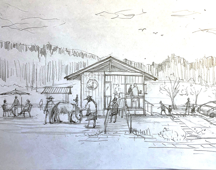 ・「馬カフェ」ロゴ ・「馬カフェ」大ラフ画
