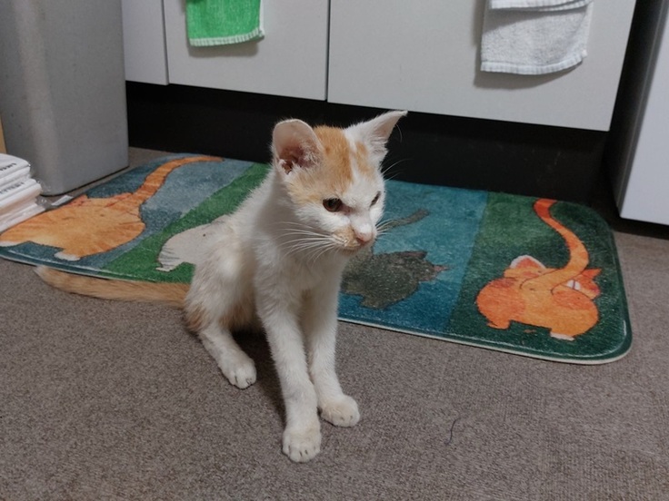 市内で行き倒れていた猫を保護し、応急処置を行いました。