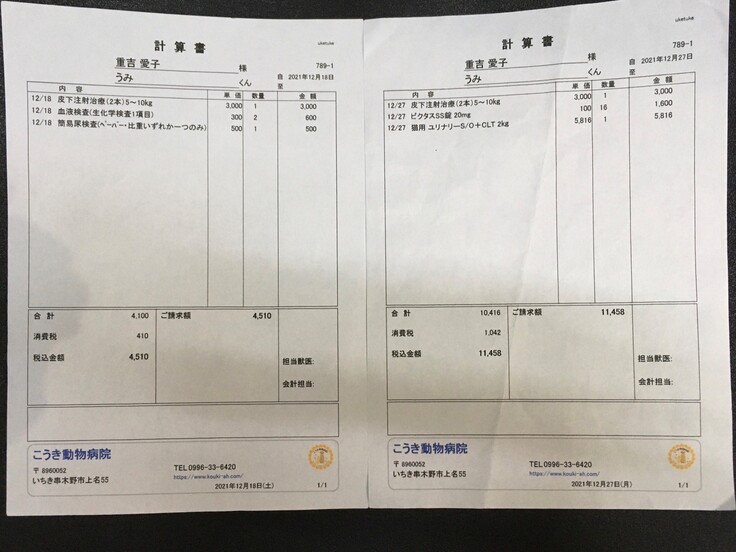 初めの尿管閉塞の時にマットレスや絨毯におしっこをしてしまい、買い替えたり、クリーニングしたり、オムツを着けるようにもなり、通院入院と何かと費用がかさんでました。