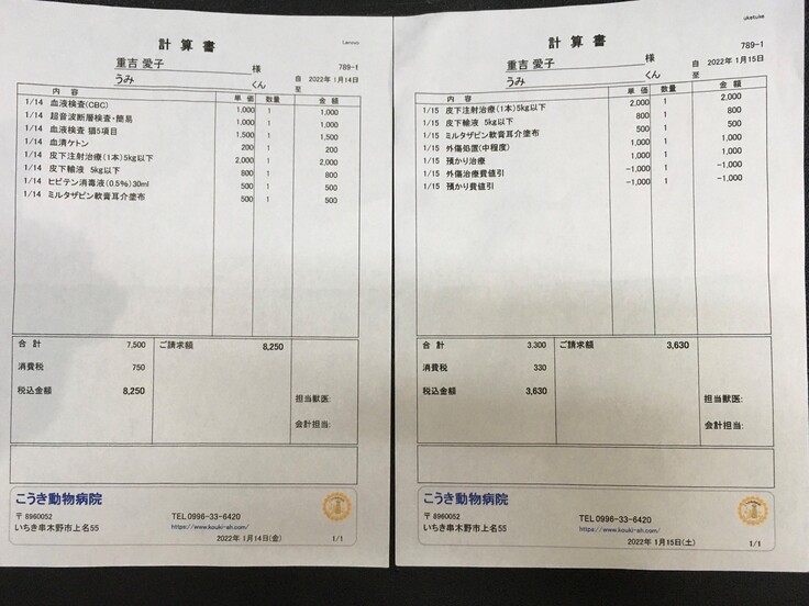 通院の日が増すごとに、うみちゃんの命を救いたい気持ちと、金銭面での不安があります。