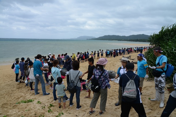 近隣校区の運動会など行事が重なりましたが、地域の皆様を中心に石垣市民や県外からの参加もあり、幼児からご高齢の方やファミリーでの参加が多く480名のみなさんが参加して頂き、美しい海を目の前に沢山の漂着ゴミを短時間で拾い集める事ができました。