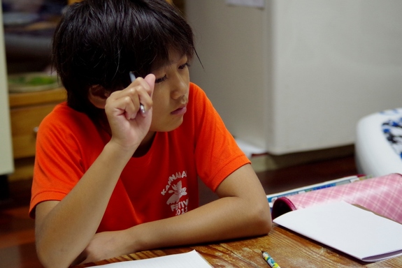 学校で学んだ公式を完全に暗記しておらず、なんとか式に当てはめようと混乱する娘に対して、誕生日ケーキを何当分するかを絵に描く僕。それは手っ取り早く点数を競う競争勉強と、時間をかけて問題と向き合い仲間を思いやる自立勉強の違いでした。