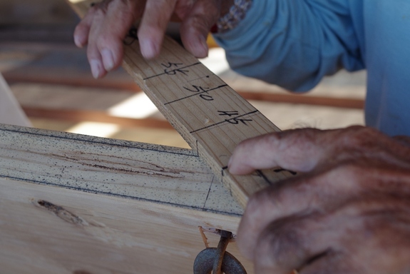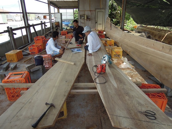 ただ、上写真の側板(そばいた)は船体後ろ部分がかなり反っていますので、板の継ぎ足しに嶺井さんたちはかなりの時間を費やしました。