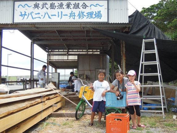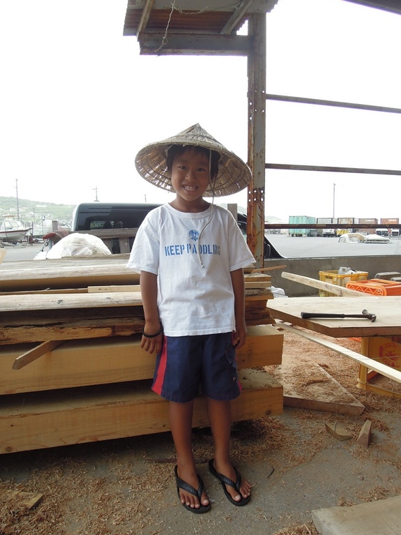 一年間の総決戦、モロカイ世界選手権が終わり九州、熊本菊池の墓参りをすませ帰沖しました。都内から海人丸二号ワークショップを申し込んでくれた僕の大学時代の同級生家族が来沖したので、二号のサバニ建造場へ向かいました。