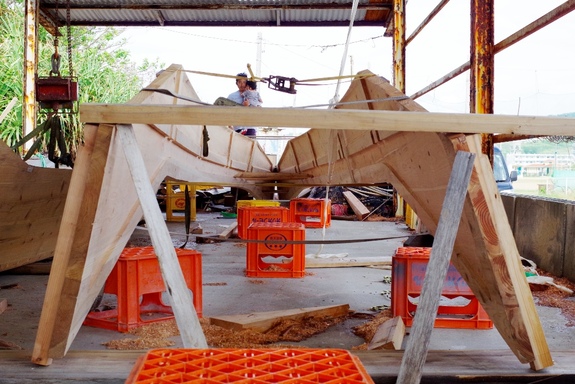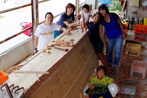 Ready forを通じて支援していただきました皆様のお陰で、サバニ伝統大工作業もようやく着工にこぎ着けた訳ですが、今年も度重なる台風が沖縄に接近しました。大工・嶺井さん親子は作業途中で台風対策を迫られ、僕も嵐の度に海人丸一号を守ることと、建造中の二号が心配で作業場に駆けつける骨の折れる日々でした。