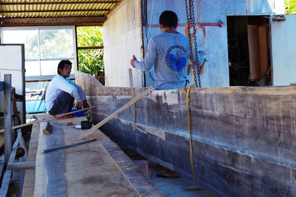 日南・井上さんから寄付を受けた飫肥杉の腐敗進行が想像以上に悪化しておらず材料を無駄にしなかったこと、そして一隻240kgと想像以上に良い出来のサバニが誕生し、これまで肩に重くのしかかっていた重圧が一気に軽くなりました。この段階でサバニ建造工程を皆さんにご報告させていただくと同時にでもまだ気を緩めず、12月の進水式に向かって邁進したいと思います。