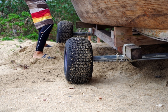 また、底の材料が最も重いため、波に揺られたサバニがちょうどヤジロベイのようにバランスを取ることも可能になります。現代ヨットにはキールと呼ばれる重りが付いていますが、まさにその役目を底板が果たしてくれるのです。しかもヨットが座礁してしまうような浅瀬の海もサバニは平気で滑走することができます^^
