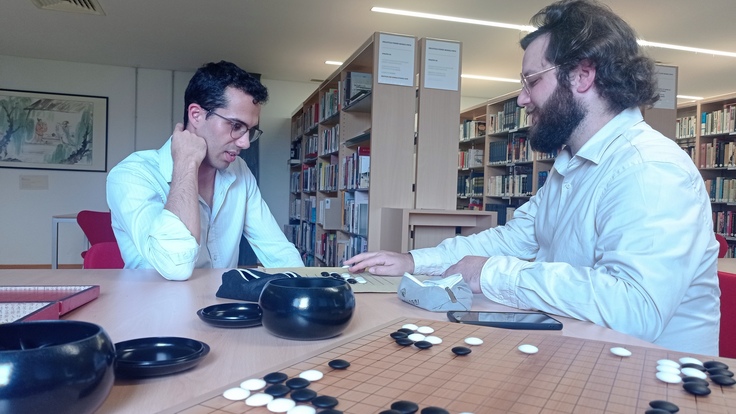 マンガをベースにしたイベントを図書館で行う予定でしたが、前出の活動報告に書きましたように、残念ながら、未だマンガが図書館に置かれておりません。しかしイベントの日程はもう決まっていましたので、このプロジェクトにいつも協力してくださっているフェルナンドさんに「碁」についてのプレゼンとワークショップをしていただきました。フェルナンドさんは、碁のポルトガル代表です。