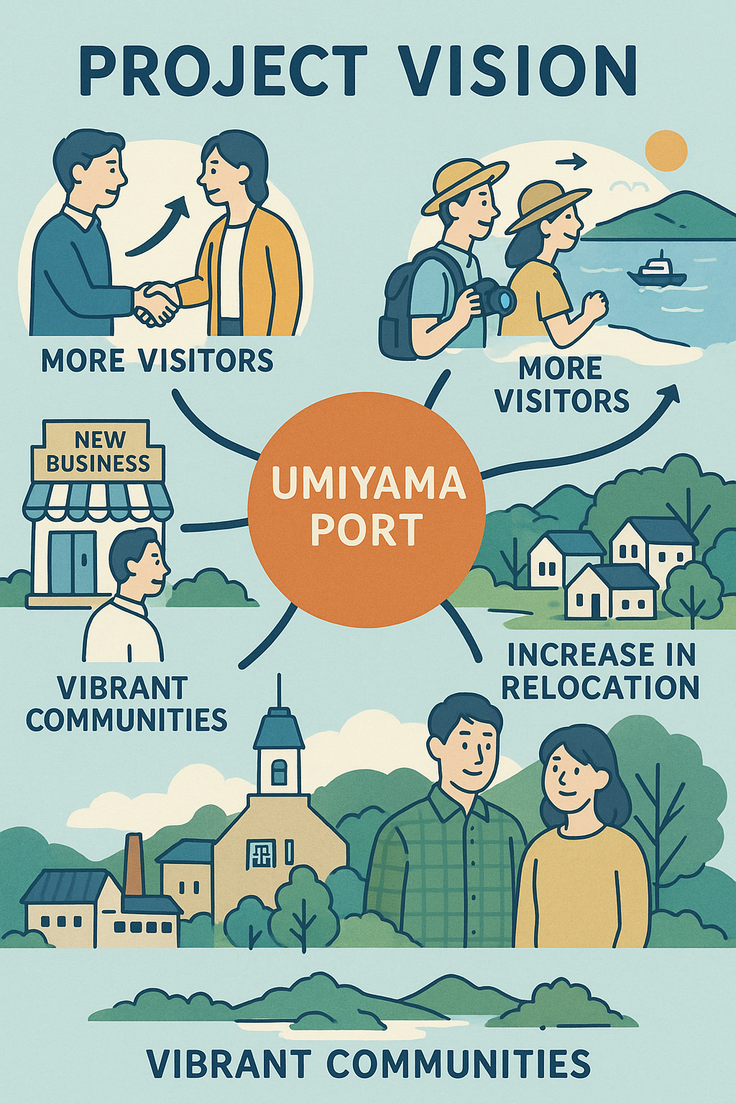 UMIYAMA PORTは単なる施設ではなく、地域に人と人のつながりを生み出す“ハブ”になりたいと考えています。 ここから新しい事業が生まれ、移住や定住を選ぶ人が増え、観光に来た人が「また戻りたい」と思える地域になることを目指しています。 岡山県内にはそれぞれ素晴らしい地域資源や特性があり、今後は唐琴での取り組みをモデルに、他の地域にも広げていきたいと考えています。 そのためにも、まずは倉敷市児島・唐琴で成功事例をつくり、地域の未来につながる挑戦を一歩ずつ形にしていきます。 ご支援をいただいた皆さまと一緒に、この町から新しい物語を描いていければ幸いです。