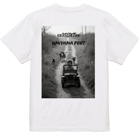 表面が、UMIYAMAPORTロゴ、背面が、有名生成AIアーティストxxNEXTxx氏デザインです