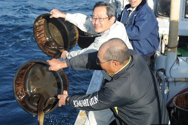 第一回の放流(11月8日)から三週間弱、昨年度は不漁から放流量が少なかった浜名湖発親うなぎ放流事業は今年は第一回で昨年の放流量を上回り、その後も買い付けが順調。本日11月27日(火)第二回放流を実施いたしました。