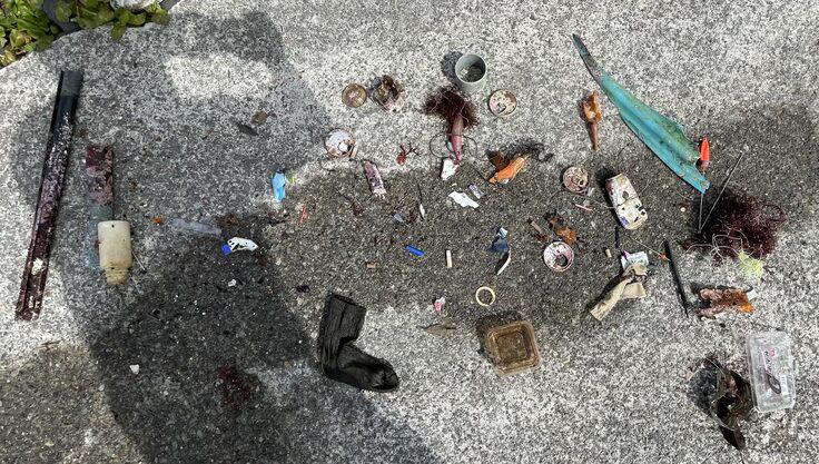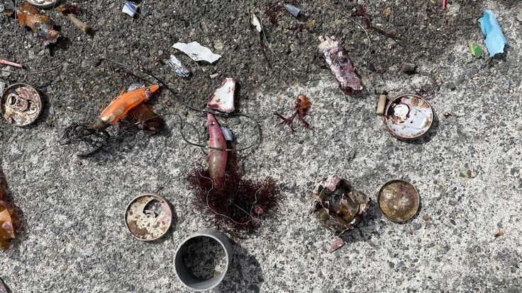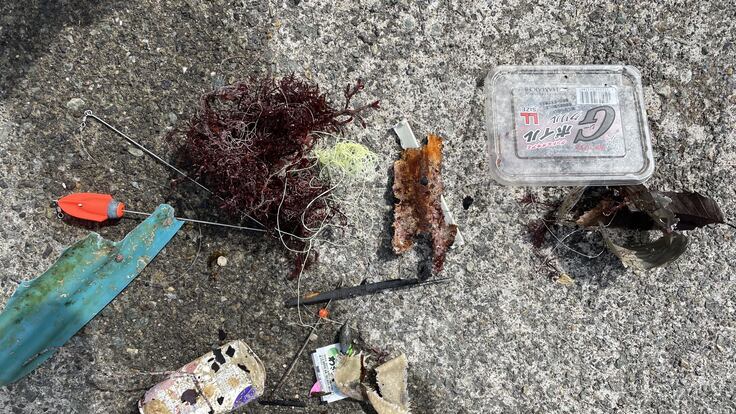 ルアー、漁網、缶、ビンの他、タバコのフィルターやライターが多かったです。缶のゴミは、本体のない上部のフタだけの物が多かったです。タバコのフィルターは海水に浸され、ふやけた状態で海底に落ちていました。