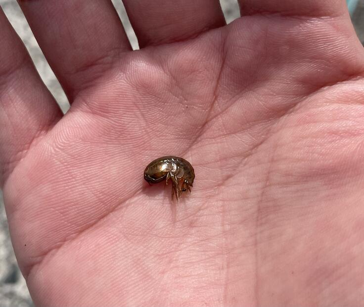 布製品のゴミからは、たくさんのヨコエビが出てきました。今まで、海ごみの大半が生態系の悪影響を及ぼしていると思っていましたが、一部のゴミは小さな生物の隠れ家になり、捕食者から身を守ってくれていることがわかりました。ゴミに付着していたヨコエビは回収し、海に戻しました。