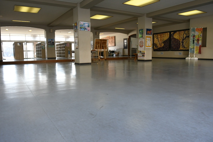 ピアノの搬入が今から楽しみだそうで、校舎1階東側多目的スペースを設置場所に考えておられるとのこと。生徒用玄関すぐ隣のこの場所は子どもたち全員が行き交い、中庭とも接した開放的な空間です。