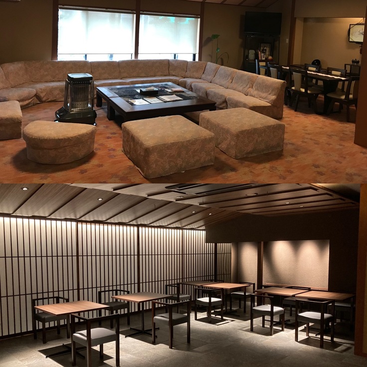 2)ロビーとしてお使いいただいていたところを椅子テーブル席のお食事スペースに