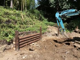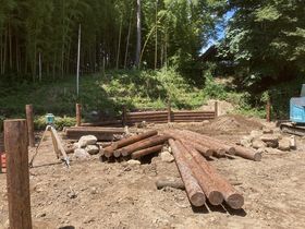 そこで清水馬三昧さんにお願いし、重機で穴を掘ってから丸太を埋めていくことになりました。
