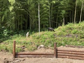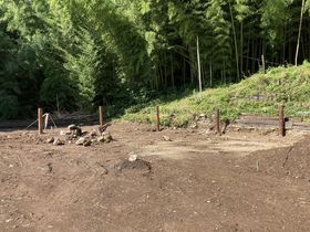 直径15メートルの放牧場を作るためには、古民家跡地の西側及び北側部分を重機で更に削る必要があり、その結果斜面からの流出を防ぐ土留めが必要になりました。