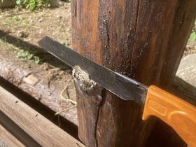 あとは柱と柱との間に横板を合計7枚ずつ取り付け、柱の上部をチェーンソーでカットすれば完成です!