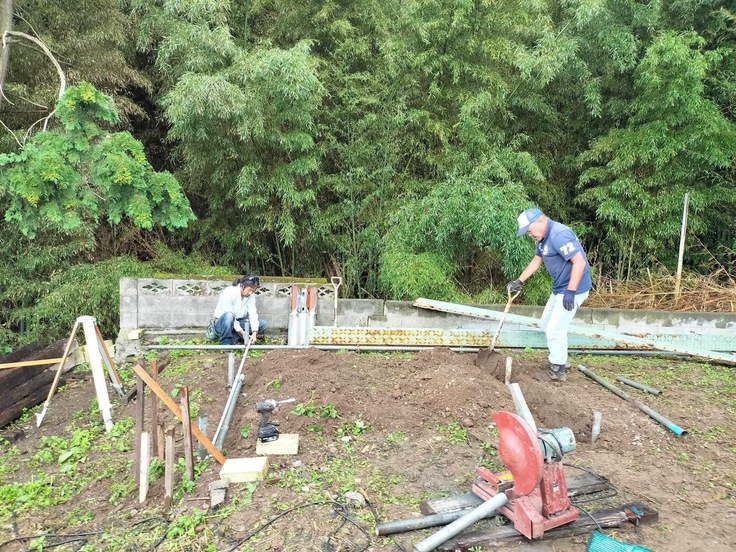 前回の馬小屋制作では、柱が立つ部分について単管パイプが打ち込まれるところまでをご紹介いたしました。