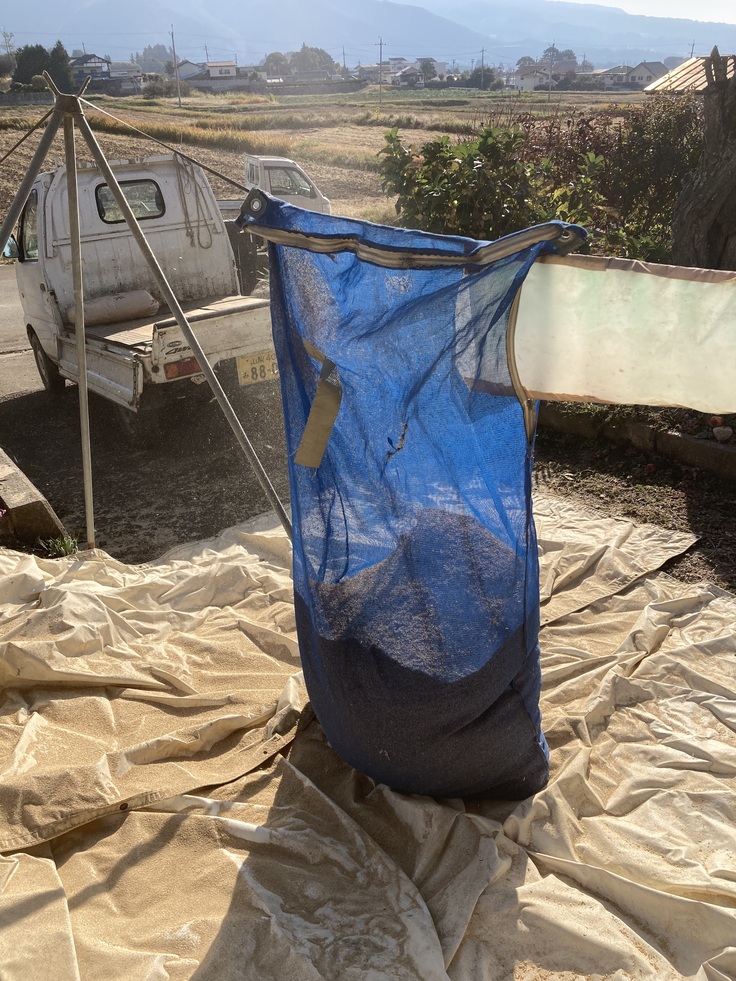 生じた籾殻は網袋に蓄積されていきます。
