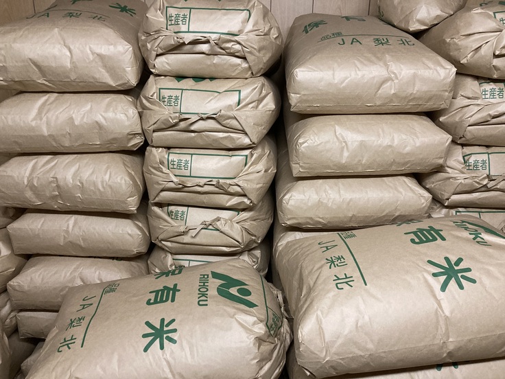 米袋に入った玄米たち。