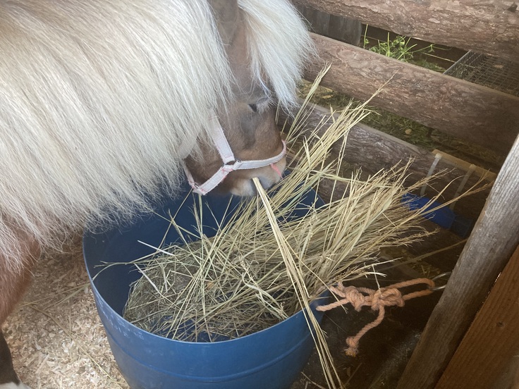 籾が外れた稲藁は毎日お馬さん達が食べております。