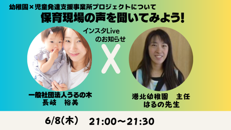 本日のインスタライブは連携する港北幼稚園の主任、はるの先生と代表長岐の対談でお送りします!!