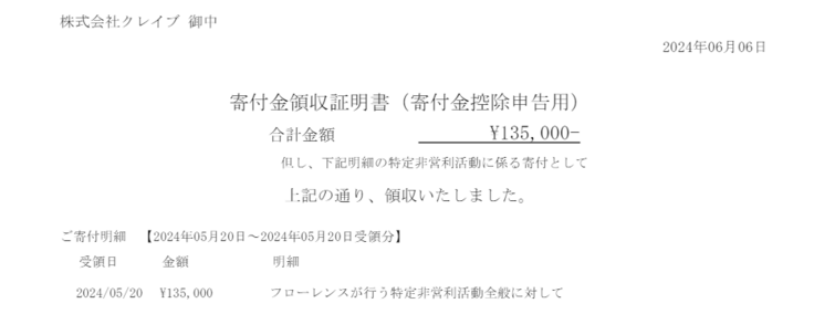 認定NPO法人フローレンスさんへ寄付させていただきました。
