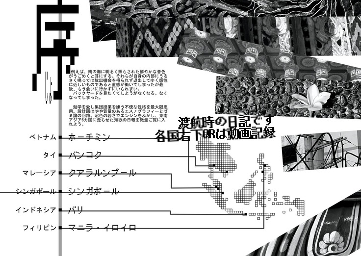 事後報告ではありますが、5月19日に行われた文学フリマ東京に参加し、渡航時の日記と写真のコラージュをまとめた本を制作、委託販売させていただきました。