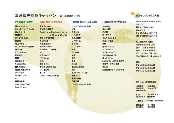 三陸歌声喫茶キャラバン「5000円」「10000円」ご支援くださった方への