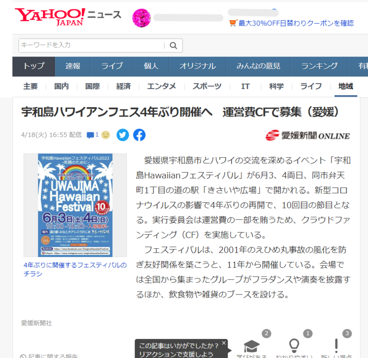 今回のプロジェクトが、愛媛新聞オンラインさんでご紹介いただきました!!!愛媛新聞オンラインさんありがとうございます!