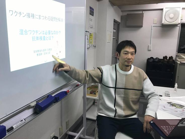 当日会場には5名、インターネットライブ配信(zoom)では12名の方々に参加していただきました。zoomでは、遠く和歌山、大阪、香川、長野在住の方もご参加されており、抗体検査について広くお知らせできる機会になったのかなと思います。ご好評いただいておりますので、さらに続けて開催したいところです。