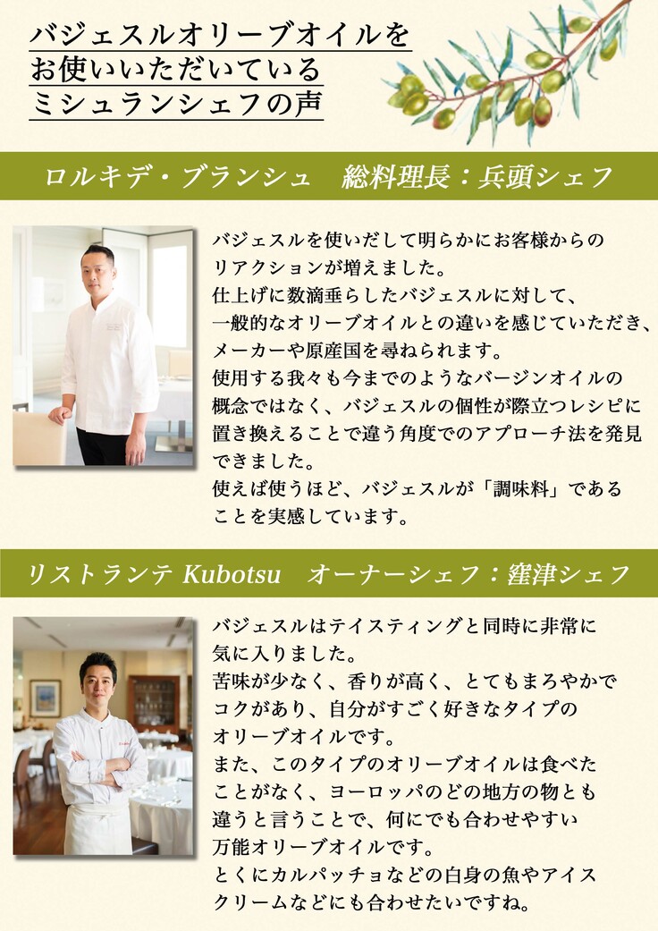 「オリーブオイルの違いが自分に分かるかなと思っていましたが、今まで使っていたオリーブオイルとは全然違っていました!」