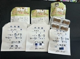 サスケくんは皮膚の薬、ロッキーくんは心臓・皮膚の薬を処方してもらっています。